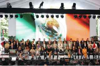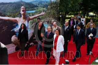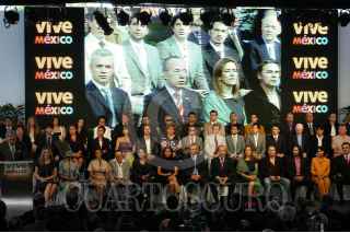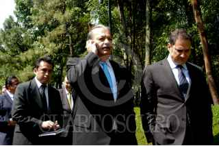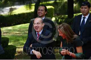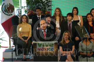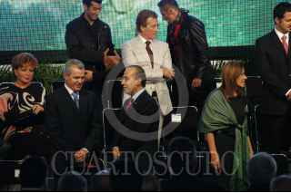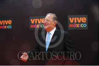 MÉXICO, D.F., 25MAYO2009.- El empresario, Carlos Slim, al termino de la ceremonia donde Felipe Calderón Hinojosa, Presidente de México, dio a conocer la nueva campaña publicitaria denominada "Vive México", con la cual se buscará reimpulsar el turismo nacional e internacional a fin de que visiten nuestro país. FOTO: GUILLERMO PEREA/CUARTOSCURO.COM