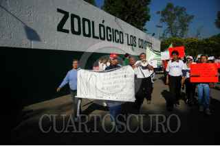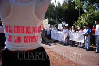 MÉXICO, D.F., 26MAYO2009.- Vecinos que acuden cotidianamente al Parque Ecológico de Los Coyotes, protestaron esta mañana exigiendo que se respete el estatus de Parque Ecológico Los Coyotes y rechazando el de Zoológico, el cual supuestamente lo esta imponiendo el gobierno local a través de un proyecto que modifica el nombre así como la tala de 1000 árboles acortando y modificando la pista de atletismo y dar permiso para colocar negocios privados dentro de esta parque. FOTO: GUILLERMO PEREA/CUARTOSCURO.COM