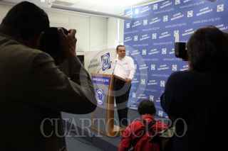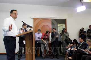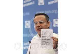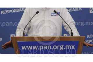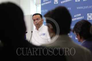 MÉXICO, D.F., 26MAYO2009.- Gemán Martínez Cazares, dirigente nacional del PAN, durante su conferencia de prensa en su sede general de avenida Coyoacán, el panista expreso sus condolencia a la familia y a el periódico La Opinión por el levantón y posterior ejecución de Eliseo Barrón, reportero que cubría la fuente policíaca de este diario, el día de ayer. En la imagen Martinez Cazares, sostiene copia de la boleta de pago de agua del inmueble que ocupa el PRI en Nuevo León, ya que aseguró que estos tiene un adeudo de 66 meses. FOTO: MOISÉS PABLO/CUARTOSCURO.COM