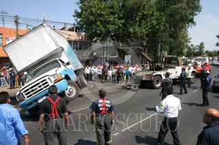 MÉXICO, D.F., 26MAYO2009.- Una camioneta de carga volcó sobre el eje 3 Oriente, Troncoso y la calle de Recreo en la delegación Iztacalco. FOTO: SAÚL LÓPEZ/CUARTOSCURO.COM