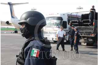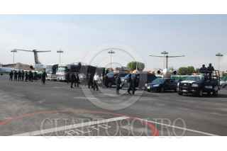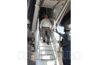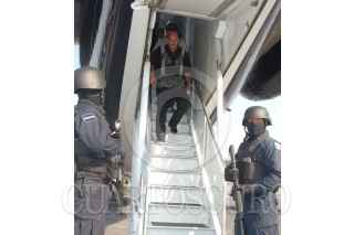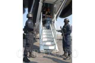 MORELIA MICHOACAN., 26MAYO2009.- Elementos de la Policia Federal, PGR y SEDENA, detuvieron a 27 servidores y ex servidores publicos, alcaldes, policías municipales y estatales de Michoacán que fueron detenidos en un fuerte operativo realizado en diversos municipios de Michoacan. En la imagen se muestra el traslado en el aeropuerto de dicha entidad. FOTO: SSPF/CUARTOSCURO.COM