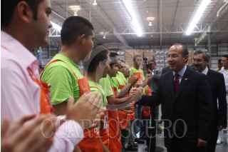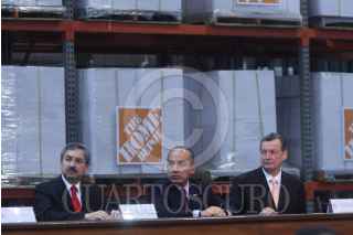 CIENEGA DE FLORES, MONTERREY 27MAYO2009.- José Natividad González, gobernador de Nuevo León; Felipe Calderón, presidente de México y Ricardo Saldívar, presidente y director de The Home Depot México, durante la inauguración del Centro de Distribución Multicanal Monterrey The Home Depot. FOTO: ALFREDO GUERRERO/CUARTOSCURO.COM