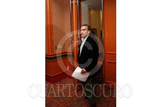 MÉXICO D.F., 26MAYO2009.- José Antonio Ortega Sánchez, Presidente del Consejo Ciudadano Para La Seguridad y la Justicia Penal A.C. momentos antes de la Conferencia de Prensa, donde dio a conocer y su oposición a que el expresidente Carlos Salinas de Gortari, junto con Alberto Anaya, líder del Partido del Trabajo (PT) que desde hace poco más de un año le ofrecieron a Lucia Morett Álvarez el hacerla legisladora y darle protección por la posible acción penal por su pertenencia a las FARC, esto en un lujoso hotel de la zona de Polanco. FOTO: GUILLERMO PEREA/CUARTOSCURO.COM