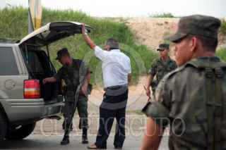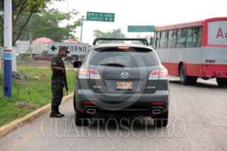 VILLAHERMOSA, TABASCO, 29MAYO2009.- Elementos de la 30 Zona Militar realizan revisiones aleatorias en automotores sospechosos, ya que continua la búsqueda de 25 sicarios que participaron a bordo de seis comboys vehiculares para intentar privarle la vida al subprocurador de justicia local. Los retenes están establecidos sobre las entradas y salidas de la ciudad; carretera a Macuspana, carretera a Teapa, carretera a Cárdenas y carretera a Centla, en donde también vigilan elementos de la Policía Estatal de Seguridad Pública. FOTO: MARCO POLO GUZMÁN HERNÁNDEZ/CUARTOSCURO.COM