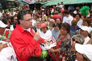 MÉXICO D.F., 30MAYO2009.- Martín Olavarrieta, candidato del PRI. a Jefe delegacional en Miguel Hidalgo realizo esta tarde un recorrido por el mercado Becerra, en la colonia Tacubaya. FOTO: CUARTOSCURO.COM