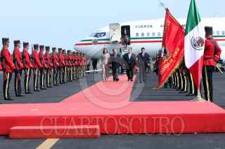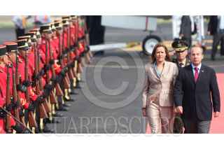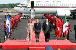 SAN SALVADOR 31MAYO2009.- Felipe Calderon Hinojosa Presidente de México acompañado por su esposa Margarita Zavala asu arribo al aeropuerto internacional de San Salvador. FOTO: FRANCISCO SANTOS/CUARTOSCURO.COM