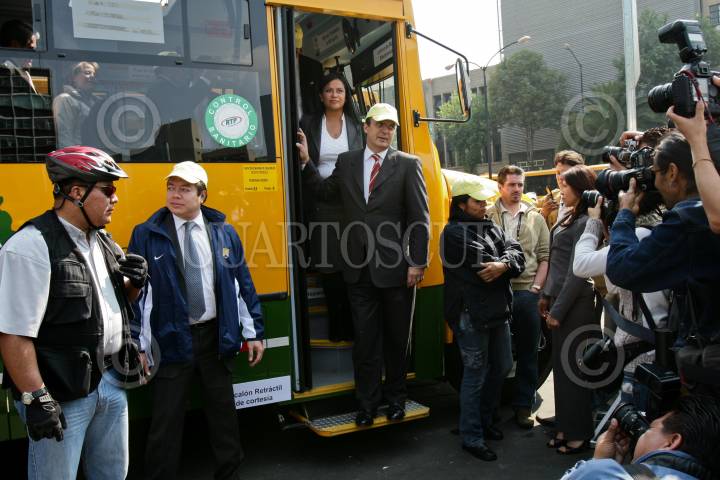 MÉXICO, D.F., 01JUNIO2009.- Marcelo Ebrard Casaubón, jefe de gobierno del Distrito Federal, se transportó a sus diferentes actividades públicas en bicicleta como cada primer lunes de mes. FOTO: ISAAC ESQUIVEL/CUARTOSCURO.COM