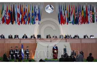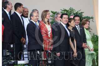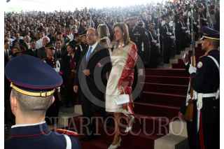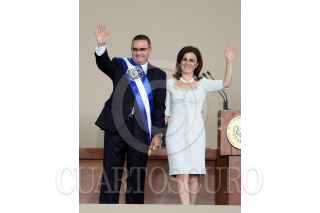 SAN SALVADOR, EL SALVADOR, 01JUNIO2009.- Mauricio Funes Cartagena, presidente de la República del Salvador y Vanda Pignato, esposa del actual mandatario, durante la ceremonia del Transmisión del Mando presidencial de la República del Salvador, que se llevo a cabo en el Centro Internacional de Ferias y Convenciones. FOTO: FRANCISCO SANTOS/CUARTOSCURO.COM
