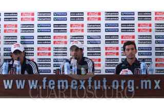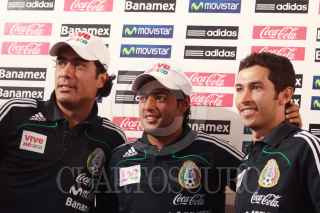 MÉXICO, D.F., 01JUNIO2009.- Edgar Dueñas, Carlos Vela e Israel Castro integrantes de la selección Mexicana de fútbol durante la conferencia de prensa que ofrecieron esta tarde previa al entrenamiento, donde hablaron de su próximo encuentro con la selección Salvadoreña. FOTO: SÁSHENKA GUTIERREZ/CUARTOSCURO.COM