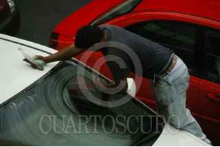 MÉXICO, D.F., 02JUNIO2009.- Una mujer casi es arrollada por un auto al bajar del pesero que circulaba en el carril central de la lateral de Avenida Paseo de la Reforma. FOTO: GUILLERMO PEREA/CUARTOSCURO.COM