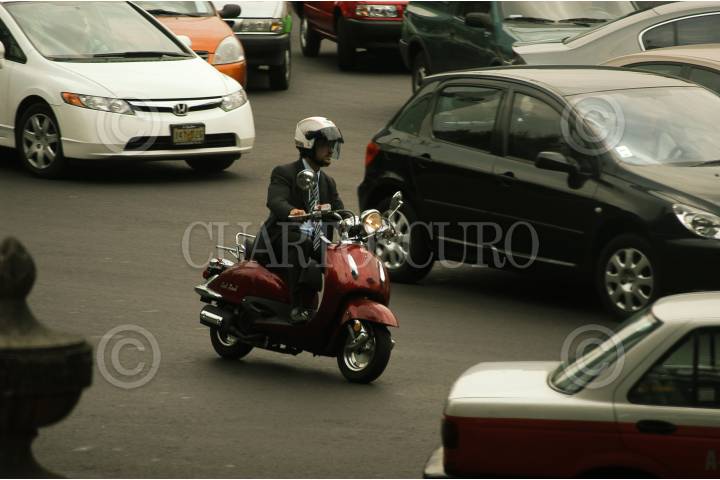MÉXICO, D.F., 02JUNIO2009.- Una mujer casi es arrollada por un auto al bajar del pesero que circulaba en el carril central de la lateral de Avenida Paseo de la Reforma. FOTO: GUILLERMO PEREA/CUARTOSCURO.COM
