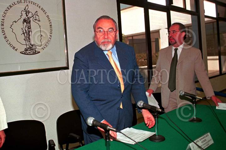 Bernardo Batiz, procurador del Distrito Federal dio su informe de actividades del 2002, en las cuales resaltó la detención de Orlando Magaña asecino del múltiple homicidio de Tlalpan. FOTO: Eunice Adorno/CUARTOSCURO.COM