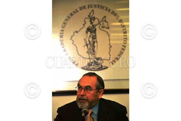 Bernardo Batiz, procurador del Distrito Federal dio su informe de actividades del 2002, en las cuales resaltó la detención de Orlando Magaña asecino del múltiple homicidio de Tlalpan. FOTO: Eunice Adorno/CUARTOSCURO.COM