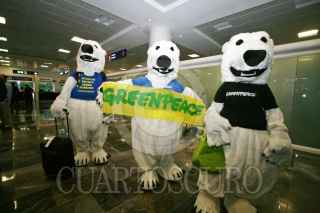 CANCUN, QUINTANA ROO, 03JUNIO2009.- Activistas de Greenpeace disfrazados de osos polares llegaron esta noche a cancun, para protestar por el cambio climatico donde apartir de mañana en Cozumel y en Xcaret el viernes se realizara el evento por el dia mundial del medio ambiente. FOTO: AMARANTA PRIETO/CUARTOSCURO.COM