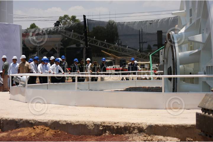 MÉXICO D.F.,04JUNIO2009.- Felipe Calderón Presidente de México, acompañado de José Luis Luege Tamargo, Director General de Conagua, Enrique Peña Nieto, Gobernador del Estado de México, Miguel Ángel Osorio Chong, gobernador del Estado de Hidalgo y José Ángel Ávila Pérez, Secretario de Gobierno del Distrito Federa, realizó una visita de supervisión al Túnel Emisor Oriente y Montaje del 1er. Equipo Excavador, dicho emisor se encuentra en los limites del Estado de México y el D.F. FOTO: GUILLERMO PEREA/CUARTOSCURO.COM