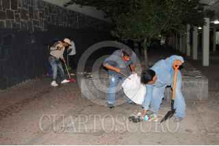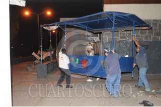 MÉXICO, D.F., 04JUNIO2009.- Trabajadores de la Universidad Nacional Autónoma de México implemento un operativo para retirar los puestos semifijos en donde se ejercía el comercio informal en las inmediaciones de la Facultad de Filosofía, esto tras la ejecución de un hombre que supuestamente ejercía el narcomenudeo en este lugar. FOTO: UNAM/CUARTOSCURO.COM