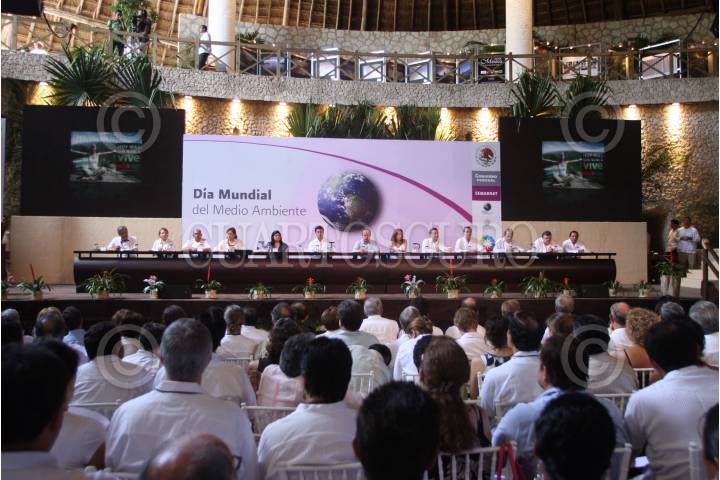 XCARET, QUINTANA ROO, 05JUNIO2009.- Felipe Calderón Hinojosa, presidente de México, realizó la cancelación del timbre postal conmemorativo al día mundial del medio ambiente. Lo acompañan el gobernador de la entidad Felix González y la primera dama, Margarita Zavala. En el evento se entregó reconocimientos al merito ecológico, el cual se le otorgo al cantante Emmanuel. FOTO: ALFREDO GUERRERO/CUARTOSCURO.COM
