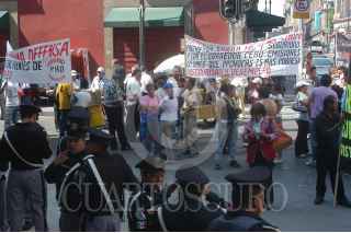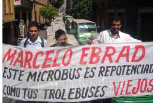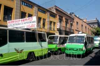 MÉXICO, D.F., 05JUNIO2009.- Mirobuseros de distintas rutas se manifestaron en el zócalo capitalino en protesta por las rutas que pretende quitar el jefe de Gobierno Marcelo Ebrard, del Eje Central Lazaro Cardenas el cual cambiara de nombre a "Corredor Cero Emisiones". reviviendo las rutas qu actualmente corren por esa vía. FOTO: LUIS CARBAYO/CUARTOSCURO.COM