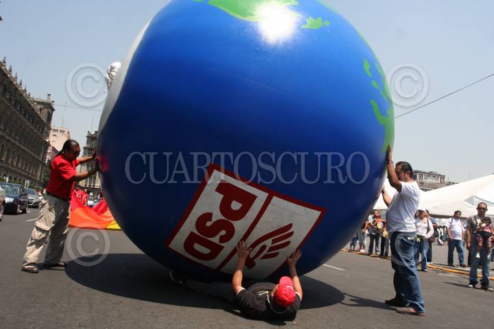 MÉXICO, D.F., 06JUNIO2009.- Candidatos y militantes del Partido Social Democrata, realizaron una marcha hacia el zócalo capitalino para promover el voto para las próximas elecciones electorales del 5 de Julio. En la imagen Jorge Carlos Diaz Cuervo, presidente del PSD, baja de una camioneta después de ofrecer un discurso. FOTO: SAÚL LÓPEZ/CUARTOSCURO.COM
