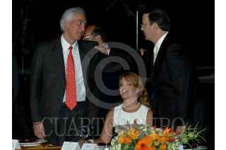 MÉXICO D.F., 06JUNIO2009.- Marcelo Ebard, jefe de gobierno del D.F., conversa con Alberto Ruíz Gallardon, alcalde de Madrid y presidente de la UCCI (Union de Ciudades Capitales Iberoamericanas) durante la cena de bienvenida ofrecida por el gobierno local por la Cumbre de autoridades locales de las capitales iberoamericanas realizada en el museo Huellas de la Vida ubicado en la plancha del Zocalo capitalino. FOTO: RODOLFO ANGULO/CUARTOSCURO.COM
