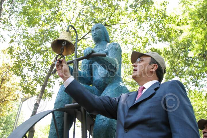 MÉXICO, D.F., 07JUNIO2009.- Una escultura viviente la cual parece ser un minero se pudo observar el día de hoy en el recorrido de la Feria de las Culturas amigas de México, que se instalo sobre Paseo de la Reforma FOTO: RICARDO CASTELAN/CUARTOSCURO.COM