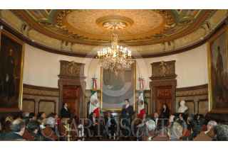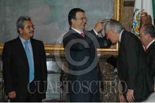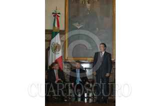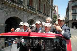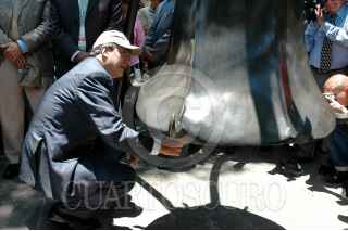 MÉXICO, D.F., 07JUNIO2009.- Marcelo Ebrard, jefe de gobierno del D.F., toca una campana durante la inauguraron de la exposición Campanas sobre el Paseo de la Reforma; esto como parte de las actividades de la cumbre de autoridades locales de las capitales iberoamericanas. FOTO: RODOLFO ANGULO/CUARTOSCURO.COM