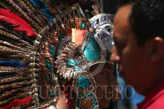 OAXACA, OAXACA 07JUNIO2009.-Vida cotidiana en el zócalo de la ciudad, en la imagen la escuela superior de Danza “Acatlan” después de dar una demostración de bailes ancestrales en la explanada de la catedral. FOTO: MAX NÚÑEZ/CUARTOSCURO.COM