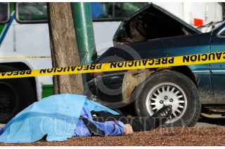 MÉXICO, D.F., 07JUNIO2009.- Un sujeto pierde la vida al impactarse contra un poste, cuando circulaba con su auto Spirit sobre avenida Periferico a la altura de la calle Nautla, en la colonia San Francisco en Iztapalapa. FOTO: LUIS CARBAYO/CUARTOSCURO.COM