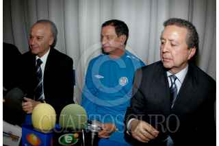 MÉXICO, D.F., 09JUNIO2009.- Enrique Meza fue presentado esta mañana como nuevo Director Tecnico de la Máquina Cementera, en compañia de la directiva del Club deportivo Cruz Azul donde estuvieron presentes, Guillermo Álvarez Presidente y el Vice Presidente Victor Garces FOTO:SÁSHENKA GUTIÉRREZ/CUARTOSCURO.COM