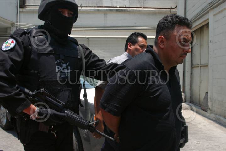 TLANEPANTLA, ESTADO DE MÉXICO 09JUNIO2009.- Mediante un operativo implementado en el municipio de Huehuetoca, por elementos de la Unidad de Análisis y Antisecuestros, apoyo de la Agencia de Seguridad Estatal y autoridades del Estado de Hidalgo, se logró la detención de Juan José Salvador Barajas, ex policía ministerial de la Procuraduría del Estado de México, de 37 años, alias “El Barajas”; Alejandro Ávalos Báez, también ex policía ministerial de ésta institución, de 38 años, alias “El Ávalos”, Alberto Ávalos Coyote, de 18 años y Héctor Hernández Piña, de 32 años, presuntos responsables del delito de secuestro. FOTO: CUARTOSCURO.COM