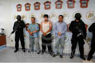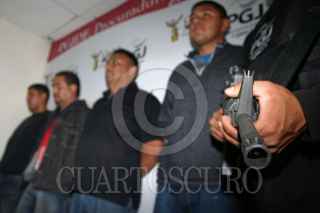 TLANEPANTLA, ESTADO DE MÉXICO 09JUNIO2009.- Mediante un operativo implementado en el municipio de Huehuetoca, por elementos de la Unidad de Análisis y Antisecuestros, apoyo de la Agencia de Seguridad Estatal y autoridades del Estado de Hidalgo, se logró la detención de Juan José Salvador Barajas, ex policía ministerial de la Procuraduría del Estado de México, de 37 años, alias “El Barajas”; Alejandro Ávalos Báez, también ex policía ministerial de ésta institución, de 38 años, alias “El Ávalos”, Alberto Ávalos Coyote, de 18 años y Héctor Hernández Piña, de 32 años, presuntos responsables del delito de secuestro. FOTO: CUARTOSCURO.COM