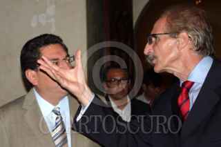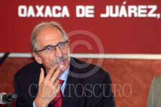 OAXACA, OAXACA, 09JUNIO2009.- Carmelo Angulo Barturen, embajador de España en México, se reunió esta tarde con el gobernador, Ulises Ruiz Ortiz, para la firma de convenio para el establecimiento y funcionamiento de la escuela taller Oaxaca-México. Al término del evento el gobernador dió a conocer que las mesas de negociación con la sección 22 están avanzando y confía en que los próximos días la situación se normalice. FOTO: MAX NUÑEX/CUARTOSCURO.COM