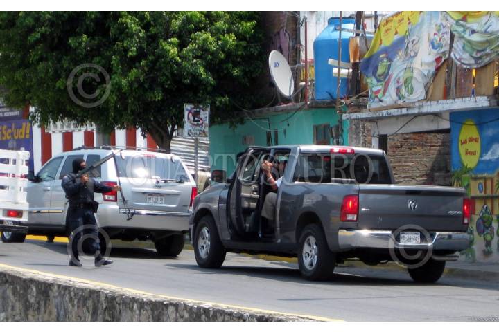 CHILPANCINGO, GUERRERO, 09JUNIO2009.- Aspecto del operativo que implementaron elementos de la Policia Federal (PF) y efectivos del Ejercito Mexicano en el autolavado y estacionamiento público "La Burbuja". Esto luego de recibir una llamada anonima que les reporto sujetos armados al interior del negocio ubicado en pleno centro de la capital del estado, esto como parte de la lucha que llevan a cabo contra el narcotráfico, luego de los hechos de violencia que se han registrado en dias pasados en el puerto de Acapulco. Cabe mencionar que durante el operativo fueron detenidas varias personas como sospechosos por estar tomando fotos con su celular y videograbando el operativo y los rotros de los federales que participaban en el operativo. FOTO: OSCAR ALVARADO/CUARTOSCURO.COM