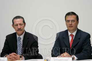 MÉXICO, D.F., 10JUNIO2009.- Marcelo Ebrard Casaubon jefe de gobierno capitalino, durante la entrega de la Clave Única de Registro Territorial (CURT) del primer cuadro de la capital, que permitirá tener una ubicación geográfica sobre el Zócalo capitalino. FOTO: RICARDO CASTELAN/CUARTOSCURO.COM