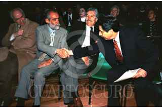 Diego Fernández de Cevallos saluda a Jesús Ortega, senadores del PAN y PRD respectivamente, durante la inaguración del encuentro universitario "Etica y reforma del Estado en México en tiempos de democracia ", organizado por la Universidad Intercontinental. Atestigua el saludo Dante Delgado, presidente de Convergencia por la Democrácia. FOTO: Juan Pablo Zamora/CUARTOSCURO.COM
