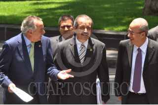 MÉXICO, D.F., 11JUNIO2009.- Ernesto Saro Bordman, senador; José Ángel Cordova Villalobos, secretario de Salud y Ector Jaime Barba, senador, durante la conferencia de prensa en la Secretaria. FOTO: EDUARDO MORALES/CUARTOSCUROCOM