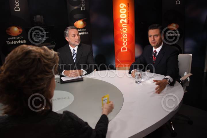 MÉXICO D.F., 11JUNIO2009.- Enrique Peña Nieto, gobernador del Estado de México, participó en el debate televisivo organizado por noticieros Televisa y conducido por la periodista Denise Maerker. FOTO: PEDRO VALTIERRA/CUARTOSCURO.COM