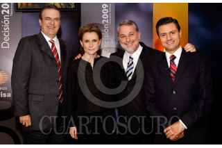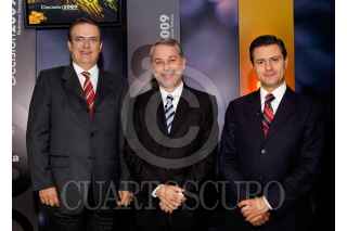 MÉXICO D.F., 11JUNIO2009.- Marcelo Ebrard Casaubón, Jefe de Gobierno, Emilio Márquez, gobernador de Jalisco y Enrique Peña Nieto, gobernador del Estado de México, participaron en el foro organizado por noticieros Televisa y conducido por Denise Maerker. FOTO: ESPECIAL DE TELEVISA/CUARTOSCURO.COM