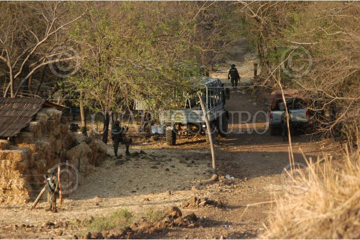 HUAJOTE, SINALOA, 12JUNIO 2009.- Personal de Infantería de Marina, adscrito a la Cuarta Región Naval, con sede en Guaymas, durante un operativo aseguraron una cifra record de cerca de 50 mil litros de efedrina líquida, en un narcolaboratorio descubierto el día de ayer aproximadamente a 46 kilómetros al norte de Culiacán, dicha sustancia encontrada servía para la elaboración de la droga sintética conocida como “cristal”, a base de efedrina líquida, aunado a lo anterior, encontró en el sitio 4 mil 400 litros de gasolina, 3 mil 250 kilogramos de yodo granulado, mil 850 litros de ácido hipofosfórico y un depósito para agua con capacidad de entre 20 a 25 mil litros. FOTO: GUILLERMO PEREA/CUARTOSCURO.COM