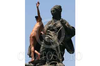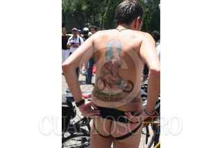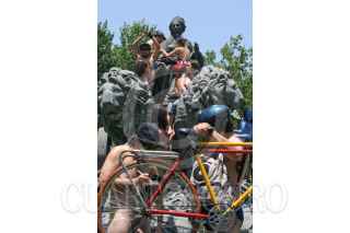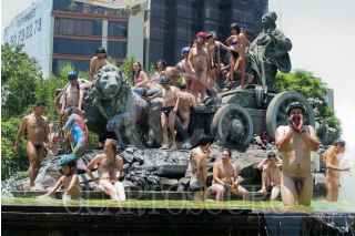 MÉXICO D.F., 13JUNIO2009.- Decenas de ciclistas, protestaron desnudos en la fuente de los Cibeles en la colonia Roma, para exigir a las autoridades que abran nuevas vias para ciclistas y hacer conciencia a los conductores de automóviles, para evitar accidentes. FOTO: SAÚL LÓPEZ/CUARTOSCURO.COM