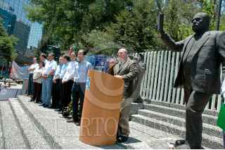 MÉXICO D.F., 13JUNIO2009.- Mariana Gomez del Campo, presidenta del PAN - DF, Manuel Clouthier Carrillo, candidato a diputado por Sinaloa y Cesar Nava, candidato a diputado federal al termino de un homenaje al pólitico Manuel Clouthier "El Maquio" sobre la avenida de los Insurgentes Sur. FOTO: RODOLFO ANGULO/CUARTOSCURO.COM
