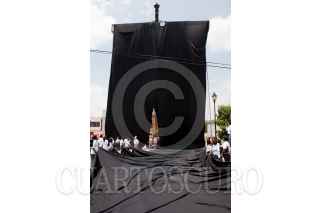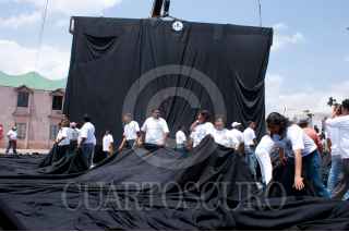 ALMOLOYA DEL RIO, ESTADO DE MÉXICO, 14JUNIO2009.- Textileros del pueblo Almoloya del Rio rompieron el récord Guinness al elaborar el pantalón mas grande del mundo con una altura de 60 metros con 10 centímetros de largo y 15 metros de cintura para un peso de casi una tonelada, el costo para elaborar este gigantesco pantalón fue de 150 mil pesos. FOTO:RICARDO CASTELAN CUARTOSCURO.COM