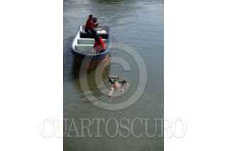VILLAHERMOSA, TABASCO, 15JUNIO2009.- El cuerpo sin vida y semi desnudo de un hombre desconocido es encontrado la mañana de hoy sobre las aguas del río Carrizal a la altura de los bordos de protección contra inundación en la colonia Indeco. Los hechos se registraron cuando un oficial de Seguridad Pública realizaba su recorrido de inspección en la mencionada populosa colonia. FOTO: MARCO POLO GUZMÁN HERNÁNDEZ/CUARTOSCURO.COM