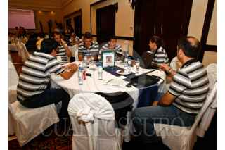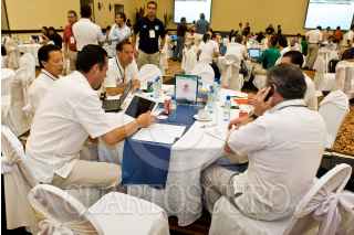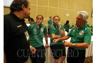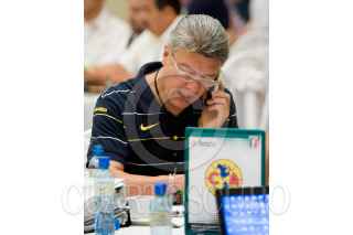 CANCUN, QUINTANA ROO, 17JUNIO2009.- Aspectos en el hotel sede, donde se lleva acabo el régimen de transferencias del fútbol mexicano, "El Draft 2009". En la imágen, Decio de María y Justino Compeán, secretario general y presidente de la Federación Mexicana de Futbol (FMF), respectivamente. FOTO: AMARANTA PRIETO/CUARTOSCURO.COM