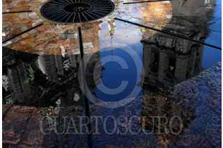 PUEBLA, PUEBLA, 17JUNIO2009.- Vista de la catedral poblana en el reflejo del agua después de la lluvia. FOTO: RAFAEL FRANCO/CUARTOSCURO.COM