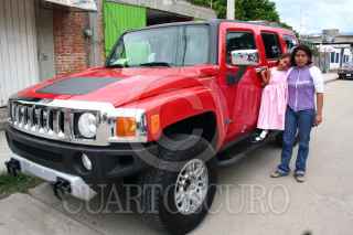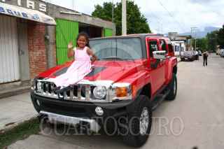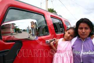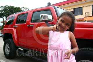 OAXACA, OAXACA, 18JUNIO2009.-Iraní Contreras Aragón la joven niña originaria de Pochutla en la costa de Oaxaca, recibió este jueves la Hummer H3 color ladrillo que se gano en el sorteo que se realizo el 22 de mayo organizada por la sección 59 del sindicato nacional de trabajadores. Acompañada de su madre, Irma Aragón Pérez, la menor recibió las llaves del vehículo. La joven madre de 26 años dijo que venderá la camioneta para comprar un terreno y edificar una casa para la menor. Su situación económica la consideró como mala, por lo cual no tiene posibilidades de mantener el servicio de la Hummer. FOTO: MAX NÚÑEZ/CUARTOSCURO.COM