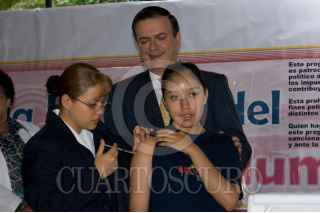 MÉXICO, D.F., 18JUNIO2009.- Marcelo Ebrard jefe de gobierno capitalino inicio la etapa numero dos de la aplicación de la vacuna del papiloma humano, esta vacuna se aplicara aniñas que estén entre los 10 y 11 años y serán aplicadas en todos los Centros de Salud de la capital. FOTO: RICARDO CASTELAN/CUARTOSCURO.COM
