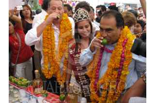 CHILPANCINGO, GUERRERO, 18JUNIO2009.- Aspecto general de la inauguracion del "4° festival del pozole y el mezcal" por parte del alcalde, Hector Astudillo Flores y el secretario de turismo Ernesto Rodriguez Escalona, el cual se lleva a cabo en las instalaciones de la feria de San Mateo, Navidad y Año Nuevo. Los acompañaron en dicho evento la señora Mercedes Calvo de Astudillo y el diputado local del PRI Jorge Salgado Parra entre otras personalidades. FOTO: OSCAR ALVARADO/CUARTOSCURO.COM