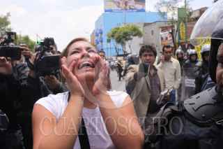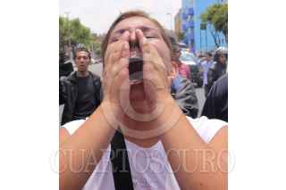 MÉXICO, D.F., 19JUNIO2009.- Familiares de los funcionarios públicos michoacanos que estaban arraigados en el Centro Nacional de Arraigo de la PGR, demostraron su impotencia cuando estos fueron trasladados esta tarde a e Aeropuerto Internacional de la Ciudad de México para ser recluidos en un penal de mediana seguridad en Tepic. El día de ayer el procurador general, anunció la consignación de 27 de los 30 servidores, bajo los cargos de delitos contra la salud y delincuencia organizada agravada, estos fueron detenidos el pasado 26 de mayo por sus presunto nexos con el cartel de La Familia. FOTO: MOISÉS PABLO/CUARTOSCURO.COM