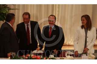 MÉXICO, D.F., 19JUNIO2009.- Felipe Calderon Hinojosa Presidente de México durante su discursoen el salon mural del deportivo isrraelita donde el mandatario mexicano encabezo la comida con miembros de la comunidad judia de México FOTO: SÁSHENKA GUTIÉRREZ/CUARTOSCURO.COM